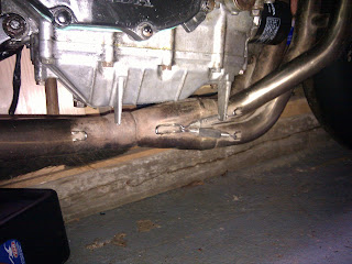 Modified gear-shift arm, now it'll take standard replaceable rose joints. You can also see the fireblade sprocket cover/speedo which is needed by the quickshifter. It allows the quick shifter to figure out which gear i'm in.